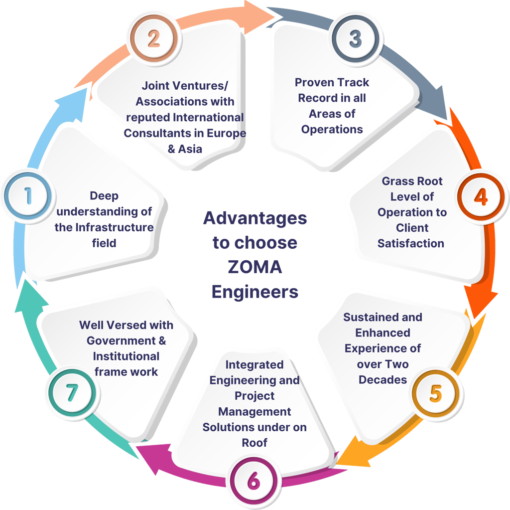 We provide end-to-end engineering consultancy services across multiple infrastructure domains, combining technical expertise, innovation, and proven execution capabilities.