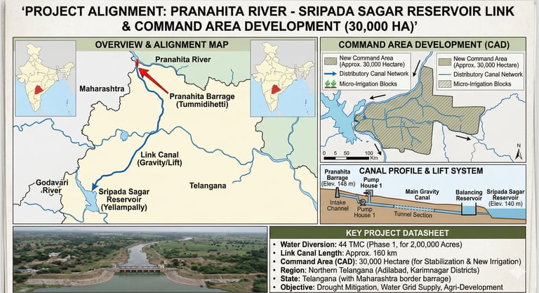 Preparation of Feasibility study and DPR for linking Pranahita river to Sripada Sagar Reservoir for the Alignment of the canal and Command area Development of Approx 30,000 hectares of land in the State of Andhra Pradesh